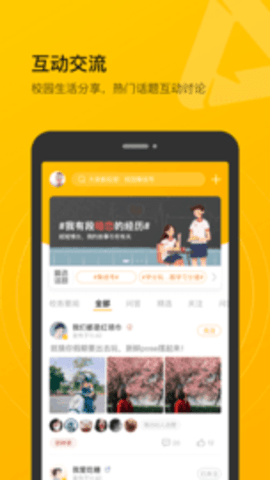 2.这里有很多的热门话题,大家可以随时随地的进行互动交流,还可以分享校园生活。