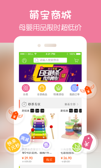 萌宝这是一个非常简单而且有趣的生活服务类型软件,这里软件给大家提供了非常科学合理的健康膳食,而且各种育儿商品和知识都可以让大家随意的进行参考和学习,给大家带到了一个极为完善一站式平台,大家可以随意的进行体验。