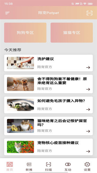 3.设置了新推,扫描,互动等各种丰富全面的宠物服务,满足用户们对于宠物的各种需要。