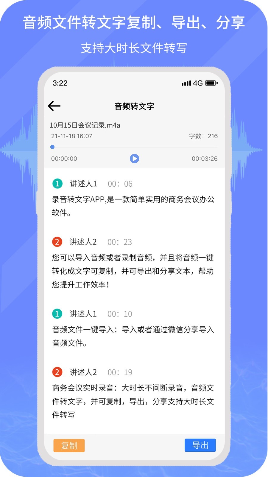 小明录音转文字是一款对于部分工作人员来说非常实用的生活服务类型软件,也是一个便捷的音频转文字工具,操作简单便捷,用户可以通过转换的方式来将各种音频转化为文字,可以直接一键分享,方便而又快捷。