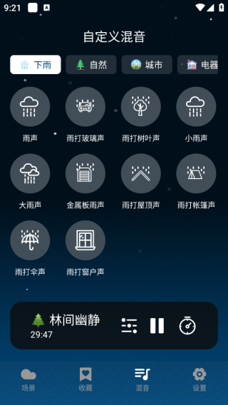 1.随时切换不同音效场景,沉浸在喜欢的声音世界。