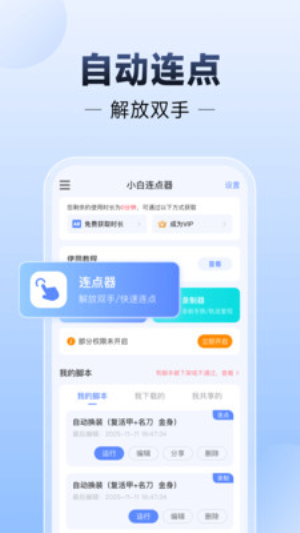 小白连点器是最近小编使用过最好用的自动点击工具,它不但可以模拟连续点击或长按操作,无需手动反复点屏幕,还能运用在游戏挂机、刷任务、抢购操作、自动化测试等需要重复点击的场景里,特别实用。