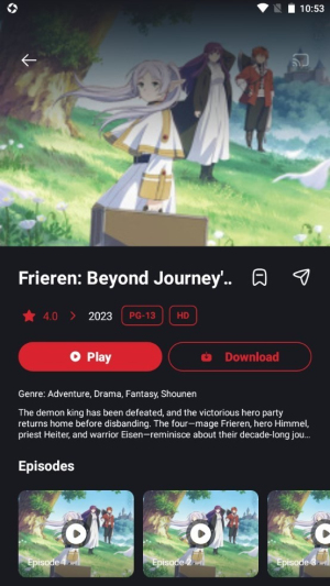 3. 支持高质量如HD1080p甚至更高的在线播放,并可将动漫下载到本地,离线随时观看,无需网络也能追番。