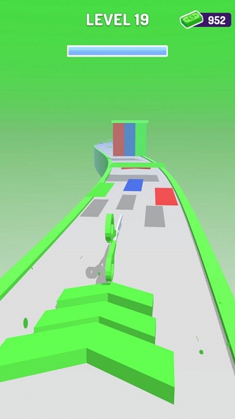 随着游戏的进行出现在赛道上的纸带会越来越多,玩家需要利用剪刀迅速移动并且剪开纸带,每一次的挑战都是全新的,赛道样式也非常的不一样,十分多样的关卡让玩家可以一次玩个过瘾,不同颜色的剪刀对应不同的纸带。