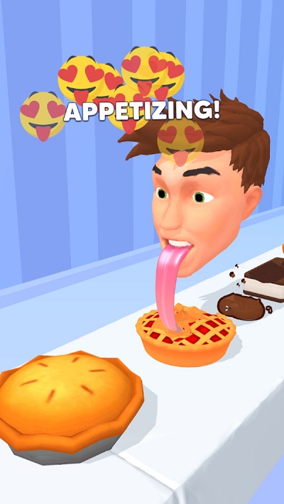 卷舌快跑这是一款与众不同的跑酷游戏,成游戏的操与传统的跑酷游戏比较相同,只是这里呈现的画面却非常的魔性,玩家需要操控一个大脑袋,在前进的过程当中不断的扫荡餐桌上的美食,当然不是所有的美食都可以吃进肚子的,需要小心判断。