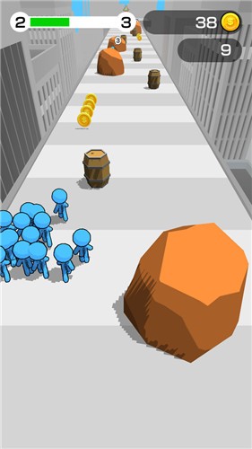 打团了兄弟们,这款画风简约的休闲跑酷类手游当中,你可以操控着蓝色小人物大前进,这样的话就能够让你更好的去击败对方,游戏当中的金币是很重要的,它可以提升你的技能,所以一定要注意拾取,这样才能让你获得更高的分数。