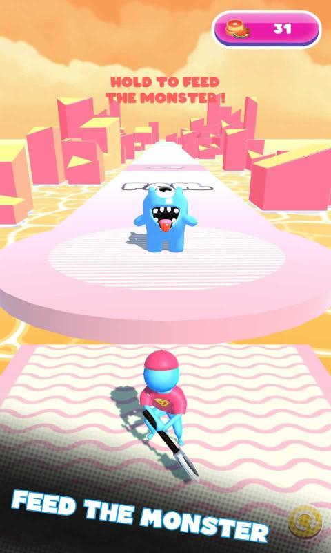 3.到了跑大厨的尽头之后,把所有的食物都扔进小怪物的嘴里,一点都不浪费。