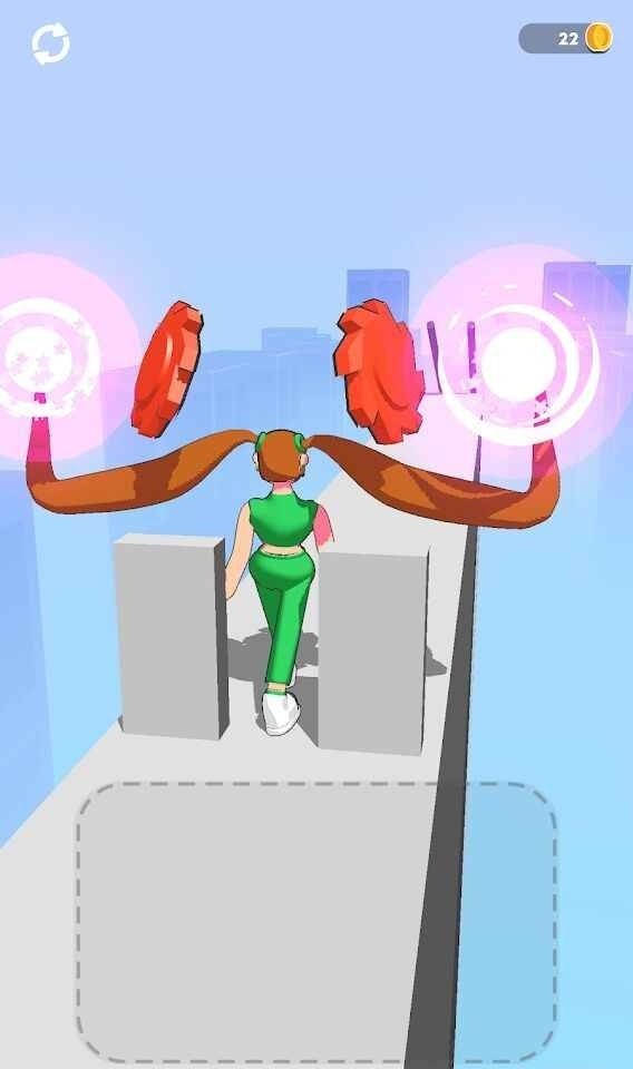 玩家在这款跑酷游戏中可以体验全新的玩法,带着长发奔跑起来很诙谐,一面它可以帮助你躲过陷阱,一面又觉得奔跑起来影响速度,但是不管怎样你的发型在这里是主角,你需要快速的做出反应才能更快速的到达终点获得奖励。