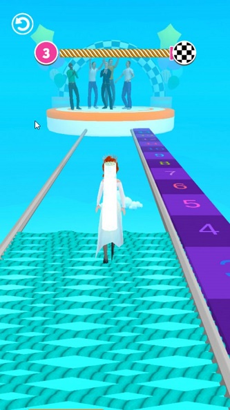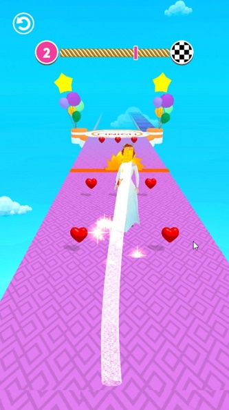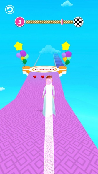 采用了卡通风格打造,会为玩家带来一场视觉盛宴,并且在游戏中是非常考验玩家反应能力的,不断的在赛道上奔跑并且为角色搭配更加华丽的服饰,成为这里最美丽的新娘,角色奔跑的速度可以逐渐的提升,道具也将提供帮助。