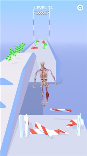 人生跑步给大家带来非常趣味魔性的闯关小游戏,玩家需要控制主角在赛道上不断的奔跑,非常经典的跑酷玩法,题材新颖,主角是一只小骷髅开始闯关,通过不断跑酷收集细胞来获得肌肉,这样才能够不断成为完整的人类,操作起来很简单,感兴趣的快来试试吧。