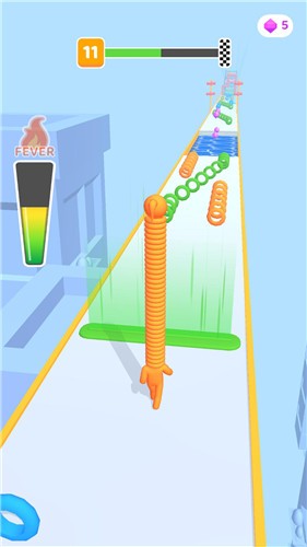 长颈跑酷脖子越长,通过关卡的速度也就越快,而且不同颜色的主角需要收集的圆圈也是不同的,可以考虑圆圈的位置,灵活走位,快速收集,度过更多难关,小心障碍物,避免被撞击掉落,非常有意思的关卡,还可以获得更多的钻石,快来试试吧。