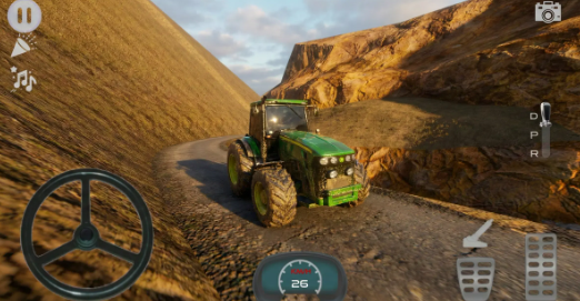 3.采用了真实的物理引擎进行设置,拖拉机等重型机械的惯性,悬挂系统以及轮胎的抓地力都非常的逼真,玩家要通过油门、刹车以及转向等操作来控制车辆。