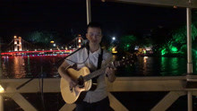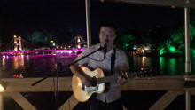 在桂林两江四湖桥上卖唱,这首粤语经典,听着有感觉