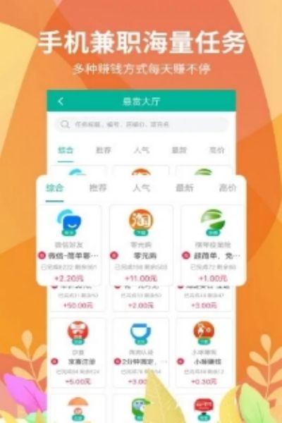 1.领先的赚钱应用程序的任务有很多奖励,收入很好。有一个用于新用户注册的红包。