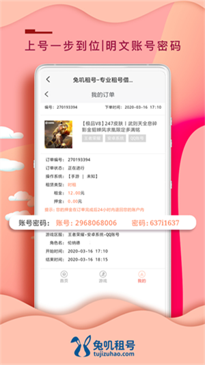 想要在游戏世界中体验到大神的畅快感,兔叽租号这款APP就可以满足用户,能够非常快速的查询到自己需要的游戏账号,并且能够一键登录账号,不会产生闪退的现象,每一个账号都是非常优惠的,更能够咨询在线的客服各种问题,可以得到非常专业的解答。