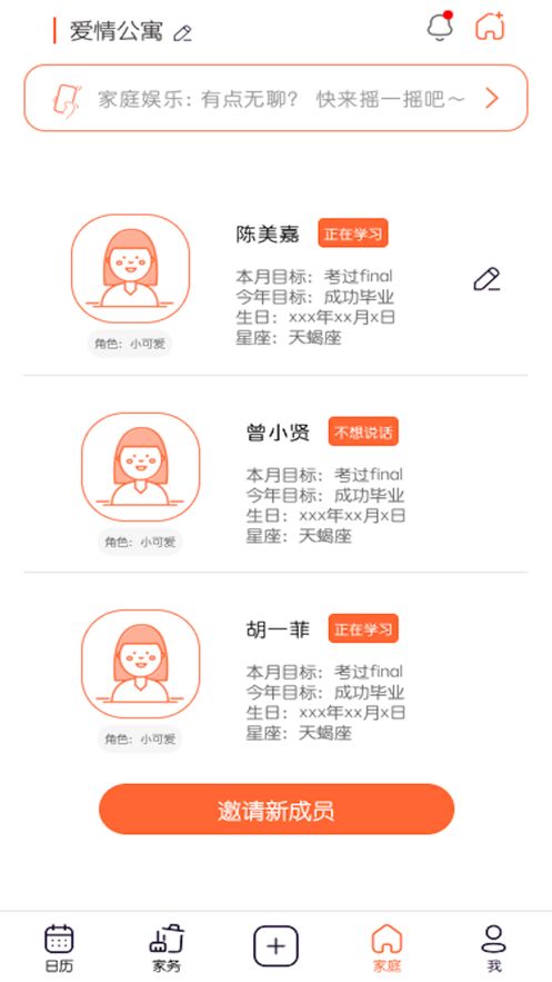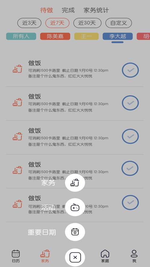 1.家务管理功能可以可视化每个家庭成员的劳动。