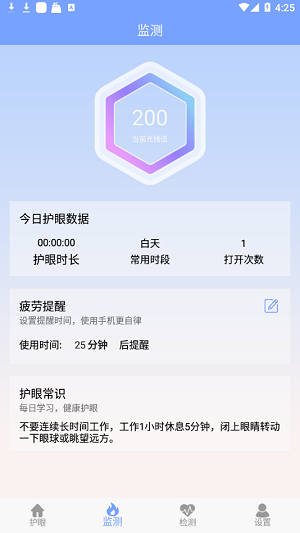1.应用程序可以自由设置提醒时间,更加自律的眼睛保护功能。