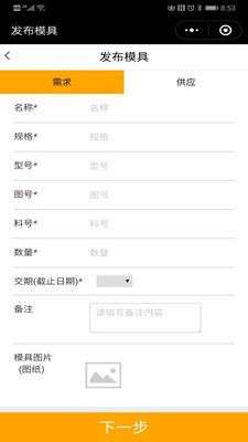 2.发布模具,编辑模具名称,规格,型号,图纸编号,数量,上传模具图片,然后一键发布。
