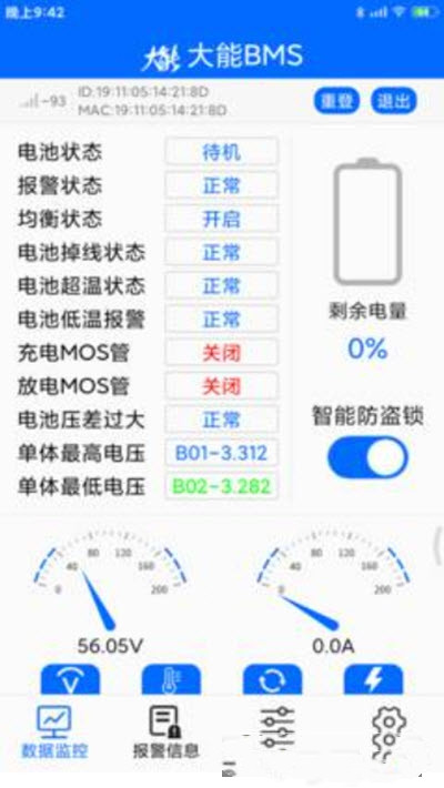 大能BMS这款app能够让用户实时的了解到电池的使用情况,并且可以预估出电池的使用寿命,利用更加科学合理的方式延长电池的使用时间,并且能够非常快速的上手使用,没有任何复杂的操作,在平台上为用户提供了一系列关于电池的参数。