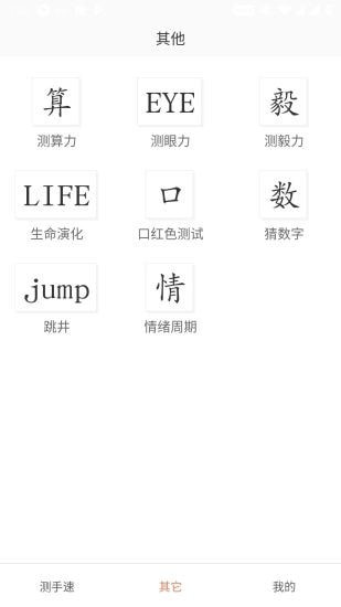在玩游戏的时候手速是非常重要的,想要知道自己的手速如何吗?加入测手速这款APP,将以非常多样的形式让用户检测自己的手速,并且只需要拿出手机就可以开启测试,具有非常简洁的界面,能够将自己的测试数据保存下来。