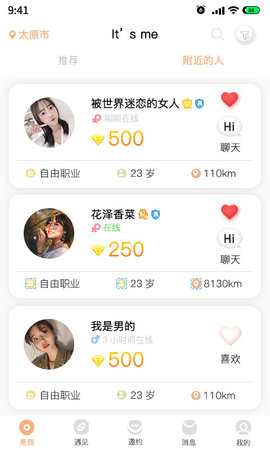 Itsme是我是一款针对单身用户打造的APP,在这里不仅能够找到与自己有着相同爱好的小伙伴,还可以结识许多有趣的灵魂,进行1对1的聊天,使彼此的距离更近,还能够在平台上分享生活中的新鲜事物,展现自己精彩的生活。