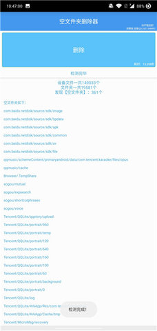 使用空文件夹删除器app,按照个人的需求情况对文件夹进行清理,一些空的文件夹总是占用着手机的内存并且查找起来十分不方便,在这里用户就可以完成一键的清理操作,十分的方便,并且对于手机的型号没有限制,按照个人需求去勾选文件夹吧。