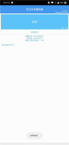 具有一键启动功能,节省了用户大量的时间,可以对空文件夹进行一键的清理操作,使用起来轻松方便并且不会出现闪退现象,为手机释放出更多的缓存空间同时提高运行速度,没有任何的困难,跟随系统的提示就可以完成清理。