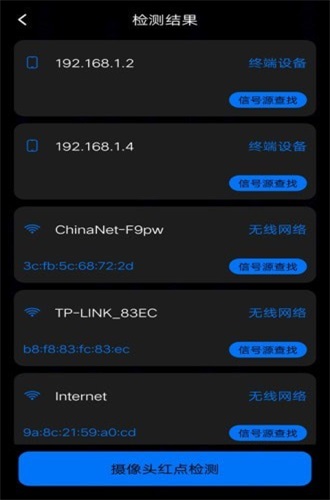 1.深入检测周围的安全隐患,如果有可疑的网络设备,系统将自动标记;
