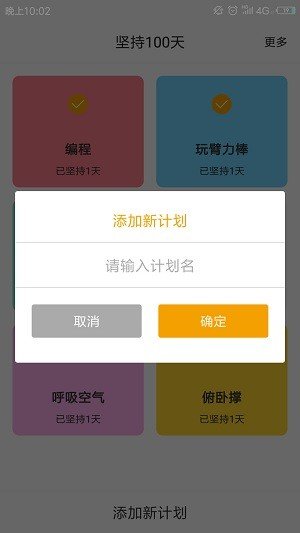 坚持100天是一款监督打卡app,用户在软件上设置打卡100天要完成的目标,记录非常方便,每天进行打卡,系统帮你约束自己,每天提醒你进行打卡,养成一个很好的行为习惯,拥有自控力的人生是很容易成功的,坚持下去你就可以改变生活。