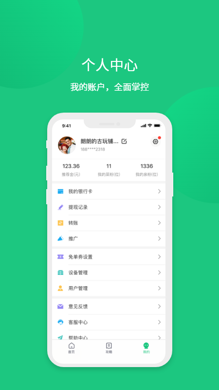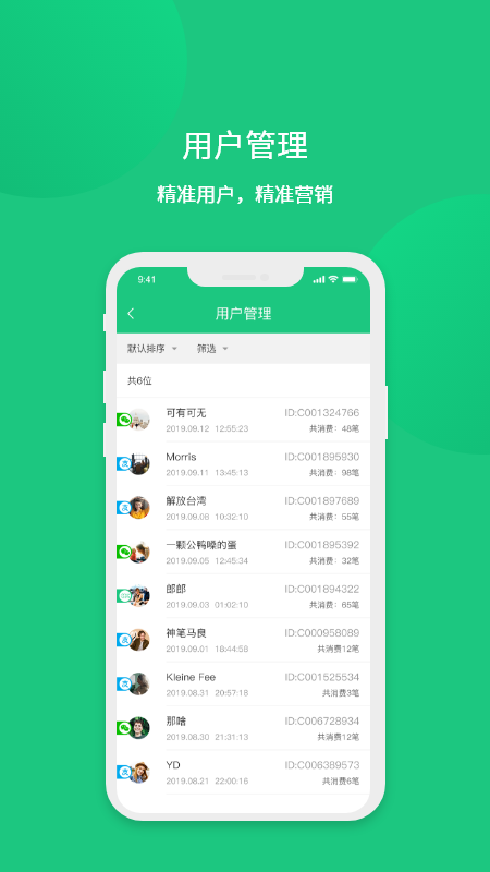 3.为商家提供财务报表、营业收入查看、与商家联动、精准营销、用户分享、用户管理等功能。
