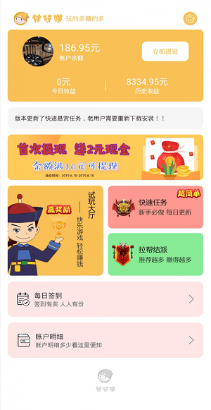 3.游戏试玩任务简单,试玩佣金高,试玩5分钟最低收益1元。