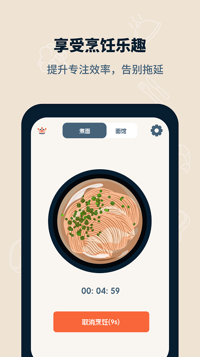 2.当您开始煮面时,您将无法在设定的时间内使用手机上的其他应用程序。
