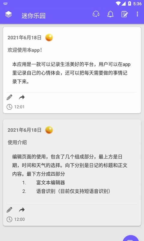 迷你乐园是一款非常便捷又方便的记事本软件,能够帮助用户们快速地记录一下需要的内容,同时也能够储存音频和视频质量,让记录变得更加的便捷,快速,同时也带来了语音的转换功能,还有更多贴心功能等待探索。