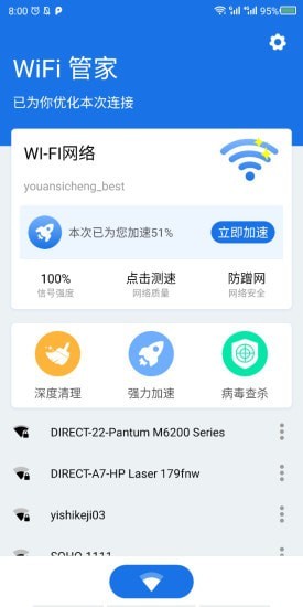 当你的手机网络发生问题,但自己又不知道该如何解决的时候,就可以下载手机WIFI大师这款软件,软件中有着非常强大的功能,可以快速的找到用户们网络的问题,并快速的进行解决,让用户们可以拥有更加丝滑的上网体验,是一款不可多得的优质软件。