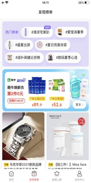1.软件中的每一件商品都有优惠活动,领取大额优惠券,能够以最低的价格购买到自己心仪的商品。