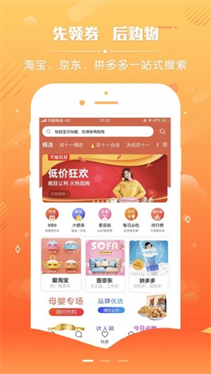 这是一款非常好用的购物券领取平台,在这款软件中领取购物券后,就可以降低你的购物成本,让你以最低的价格购买到自己心仪的商品,软件中的操作功能,非常的简单,一键式的领取,轻松购物。