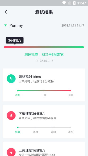 2.通过这款软件,用户们只需要30秒就能够测取准确的网速。