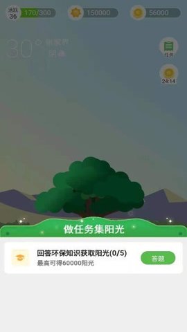 一棵树这款app将通过答题的形式来进行,并且用户可以种植一棵属于自己的小树,在这里提高自己的环保意识,使用起来方便轻松,小树可以进行逐渐的升级并且为我们带来一定的收益,回答对的问题越多越好,还具有多种不同的题目类型。