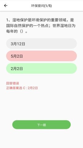 3.回答对一定数量的问题,让用户了解很多关于环保的知识。