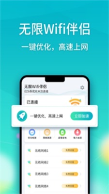 无限Wifi伴侣是一款十分好用的网络连接软件,在这里可以轻松的显示周围的网络密码,大家可以自由的输入使用,软件会时刻的检测网络的运行情况,确保大家上网安全,软件中还有网络加速运行,网络优化等功能,非常的智能化,让大家可以轻松上网!