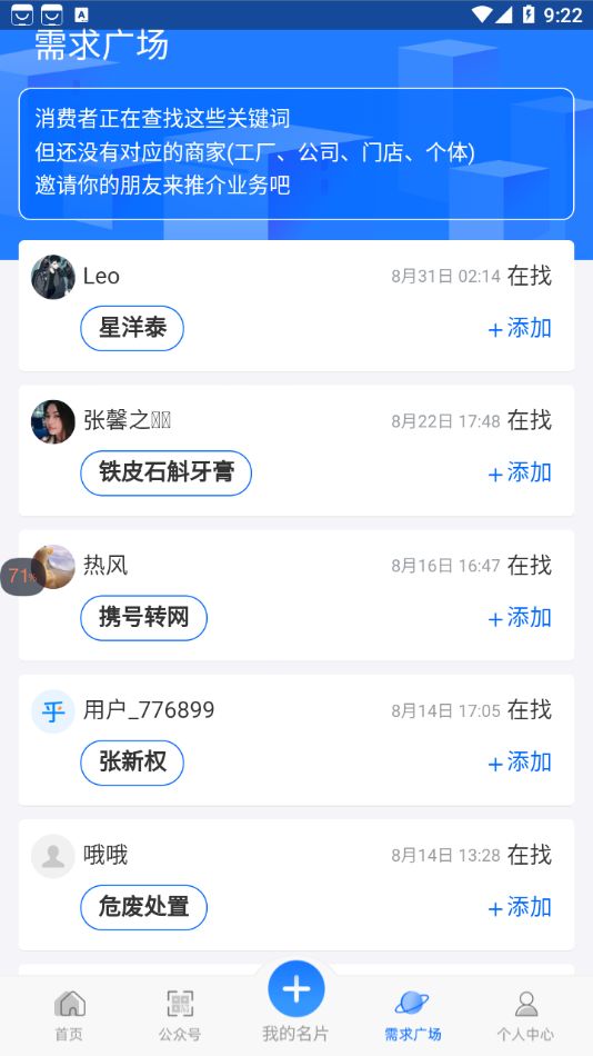可以摆脱很多的干扰条件并且在短时间内查询自己需要的目标内容,找到目标客户会非常的方便,直接将我们的条件输入其中就可以了,能够提高我们获得客户的效率,针对不同的商家来说平台将会推荐合适的功能,沟通也很方便。