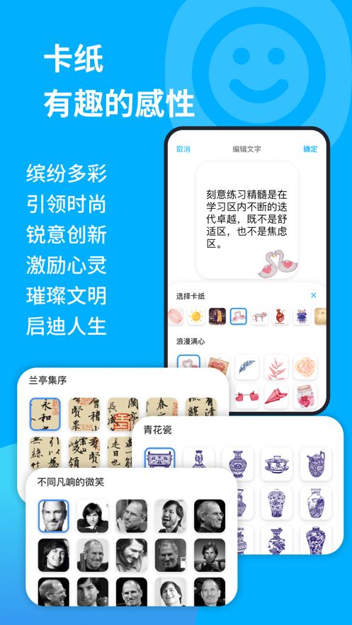 2.突破时间以及空间的限制,也会有非常多样的卡片形式可以选择。
