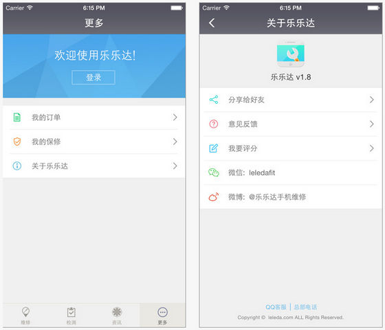 该软件里面有很多服务功能,如果你的手机坏了,一个电话就能直接上门维修,并且全国各地都享受包邮服务,有什么疑问都能在线咨询客服,相信客服人员一定能解答你的所有疑惑,别犹豫了,快点入手这个软件来试试吧。