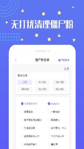 1.用户跟随着系统的提示就可以进行僵尸粉清理操作,没有难度