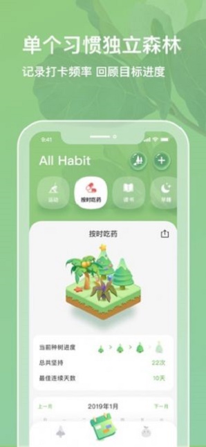 1.每次完成任务都可以种植一棵小树,让自己打造森林世界吧。