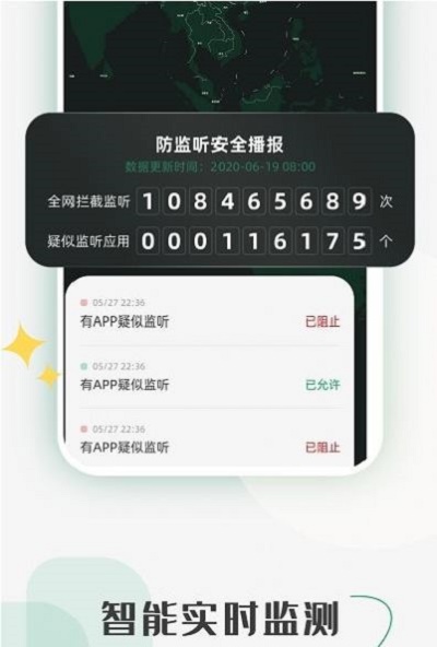 防监听助手是一款能够有效保护用户隐私安全的app,将在手机后台稳定运行,可以查看到是哪些软件在泄露我们的隐私,更可以进行关闭操作,对于不同型号的手机来说都可以使用,并且功能都是免费的,用户还可以自定义手机的参数进行广告拦截。