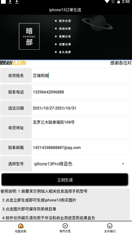 《iphone13订单生成器》软件亮点: