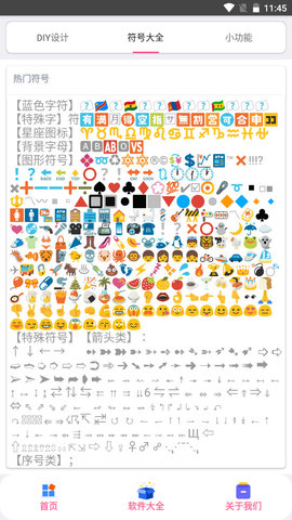 用户可以在这里找到自己喜欢的字符去使用,还拥有着非常清晰的分类便于用户选择,按照自己的喜好去选择字符,用户点击就可以进行字符的设置,在这里用户可以找到自己喜欢的昵称,特殊符号也可以找到。