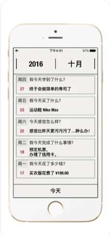 3.极简的界面设计使用户专注于自己的日常记录,拿出手机就可以使用。