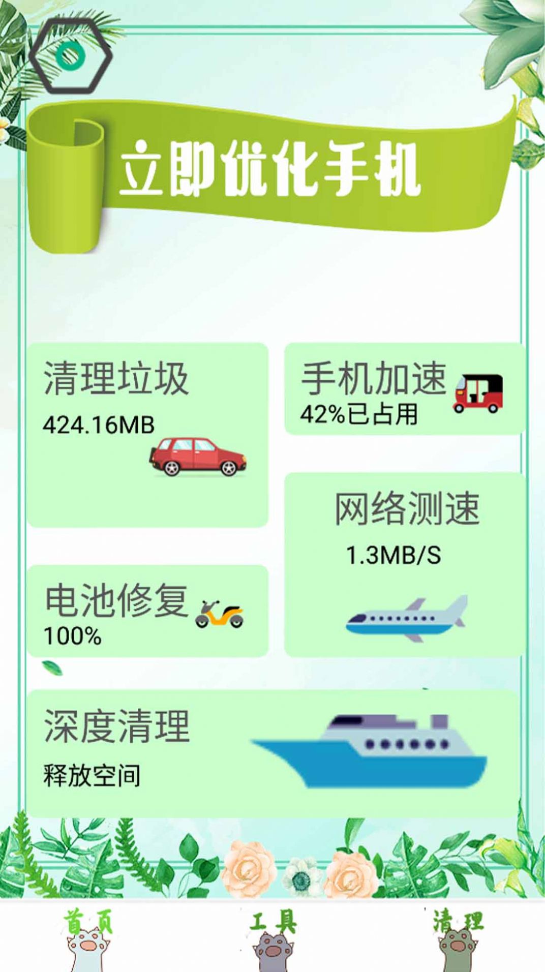 3.但我们下载好之后,不用注册登录,打开软件就可以直接对手机清理。